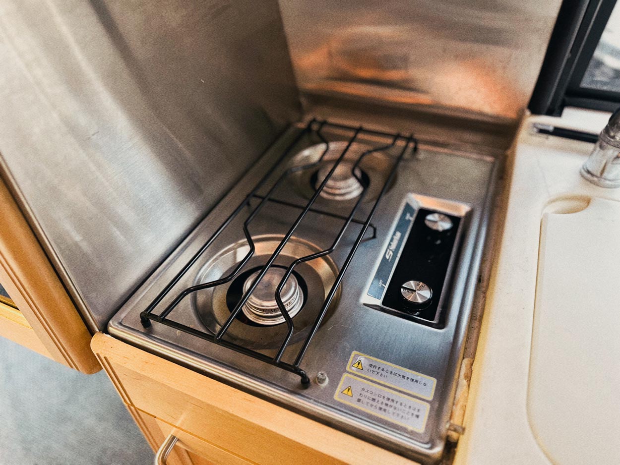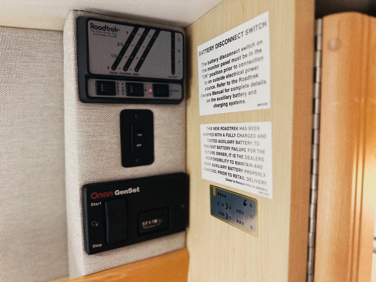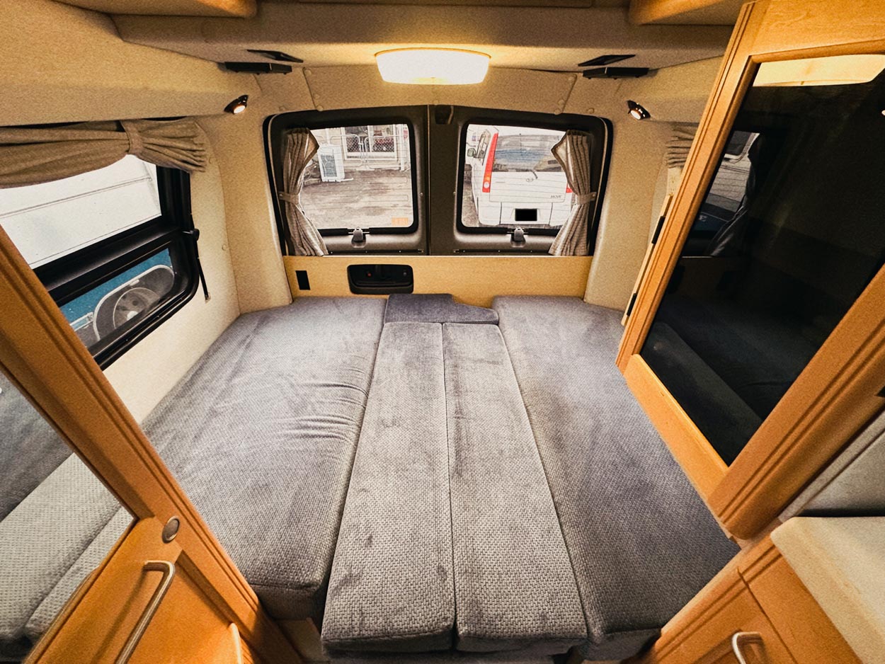 ヒッチメンバー、トレーラー連結カプラー、ブレーキコントロール、 ルーフエアコン、トイレ、ジェネレーター、サブバッテリー、走行充電システム、FFヒーター、 3WAY冷蔵庫、ボイラー、2口コンロ、シンク、電子レンジ、ベンチレーター、 センターテーブル、リアモニター、クルーズコントロール、換気扇、収納棚多数、コンディション確認モニター、ETC、NEWバグガード